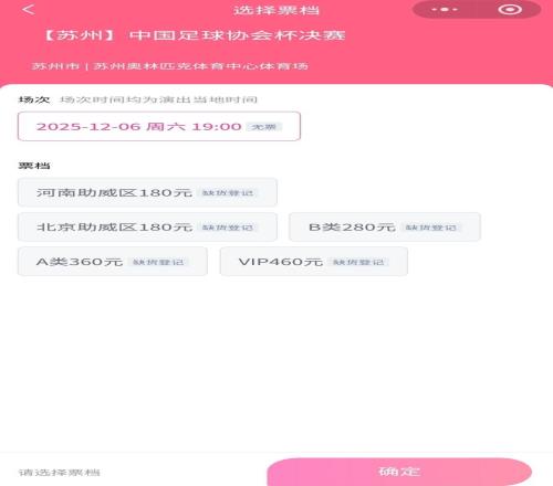 12月6日(星期六)19:00,备受关注的2025中国足协杯决赛将在苏州奥体中心体育场上演,由北京国安迎战河南队。11月6日上午,这场巅峰对决的门票正式开售,结果,开票后不久就被抢购一空,足见这场比赛的火爆程度。